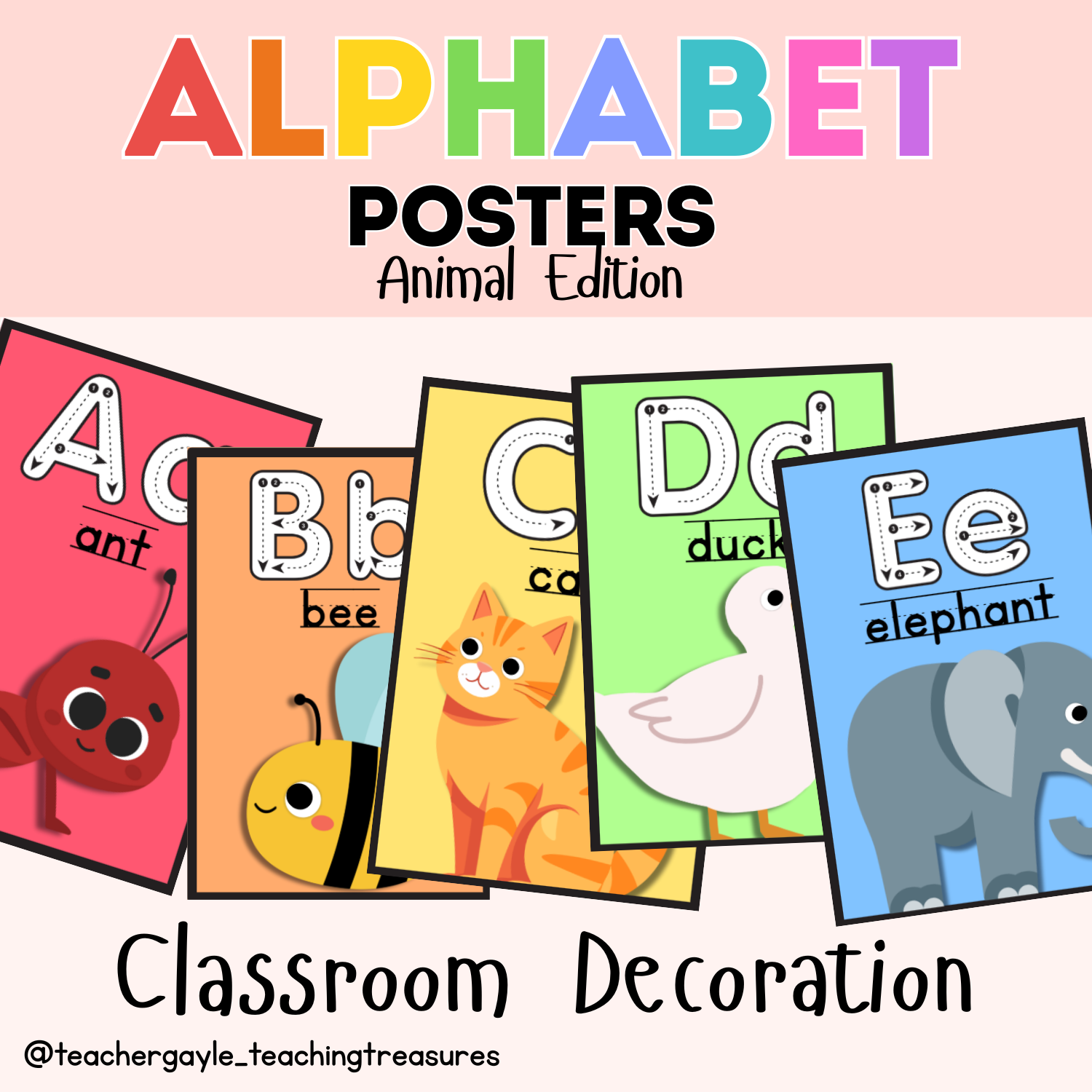 This Alphabet Posters Set (Animal Edition) is a fun and colorful way to introduce letters to young learners! Each poster shows a bold uppercase and lowercase letter paired with a simple, child-friendly picture example—like A for Ant, B for Bee, C for Cat. These easy-to-recognize visuals help children connect letters to words and sounds in a playful and memorable way. Designed in bright colors with clear illustrations, the posters are perfect as classroom decorations while supporting early literacy and phonics learning in kindergarten.